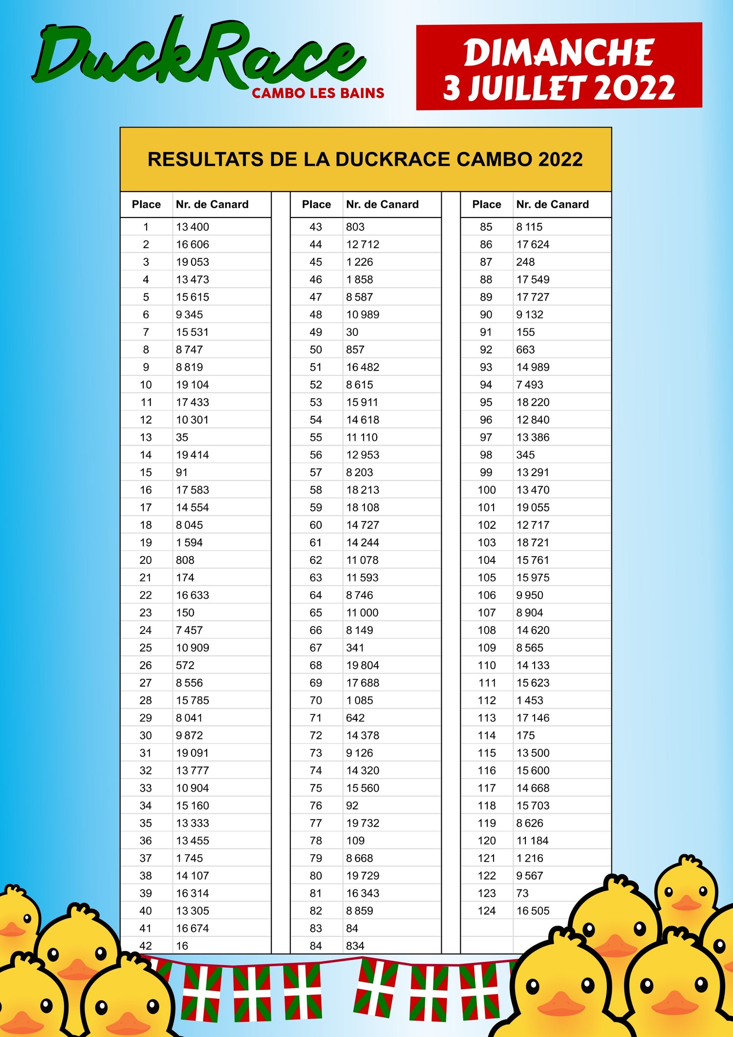 Resultats de la DuckRace Cambo 2022